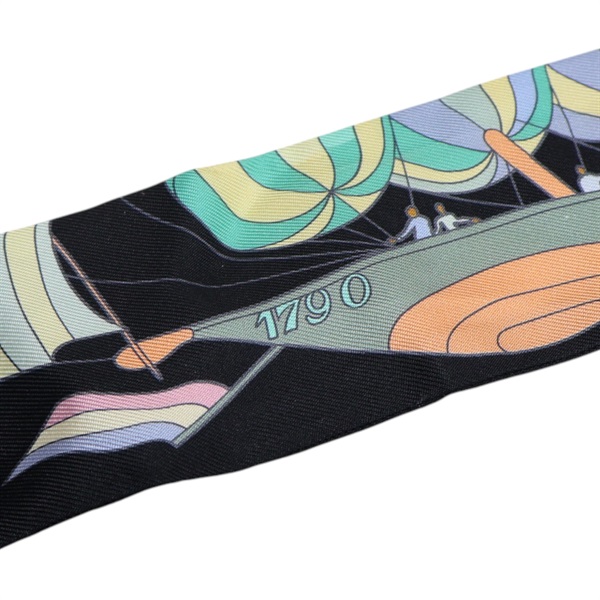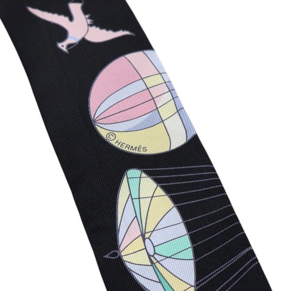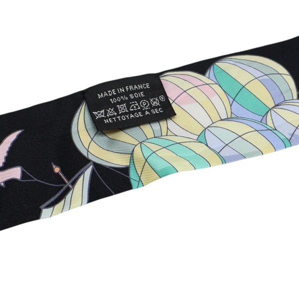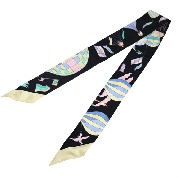 黑色 絲綢 絲巾 Les Folies du Ciel Twilly【HERMES 愛馬仕】