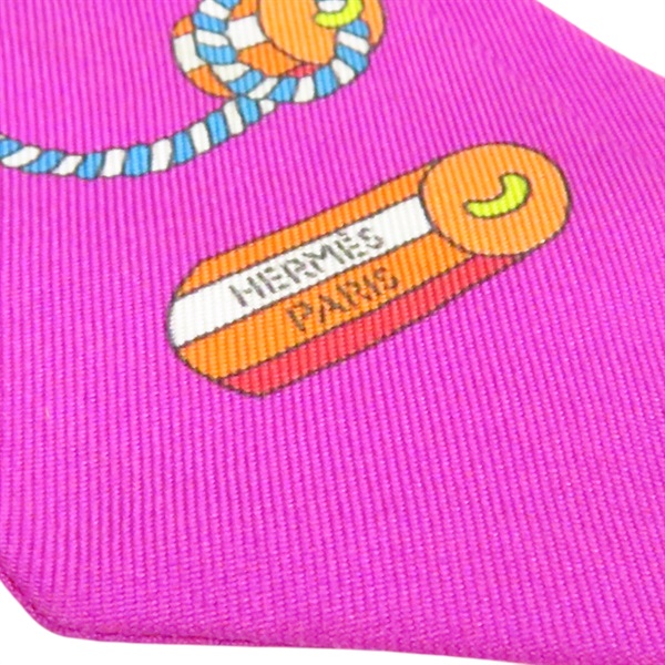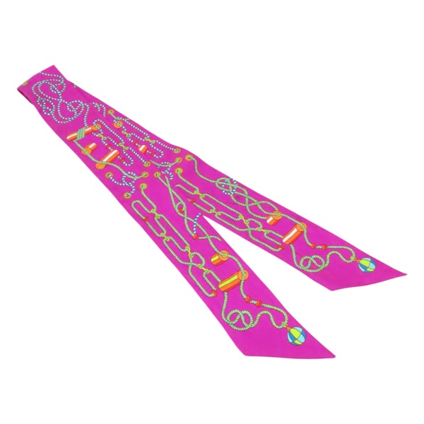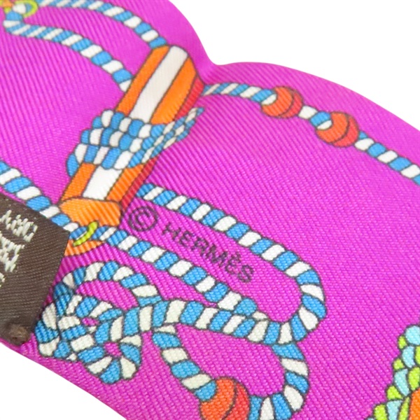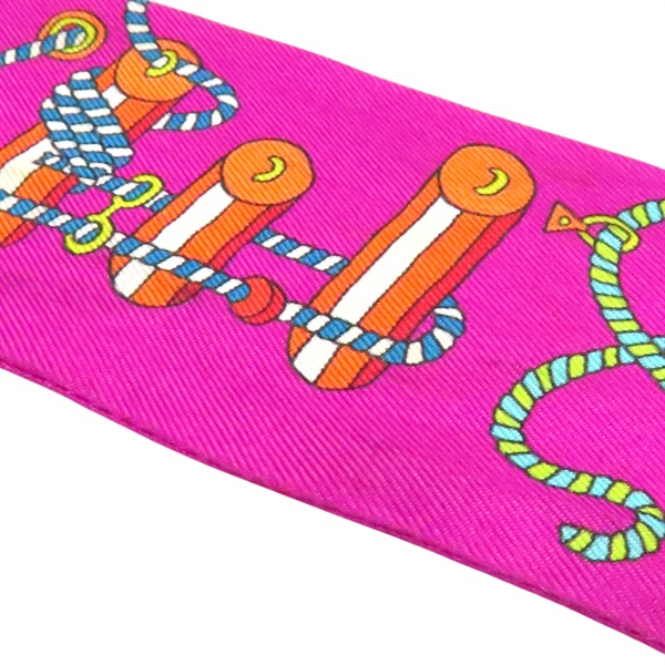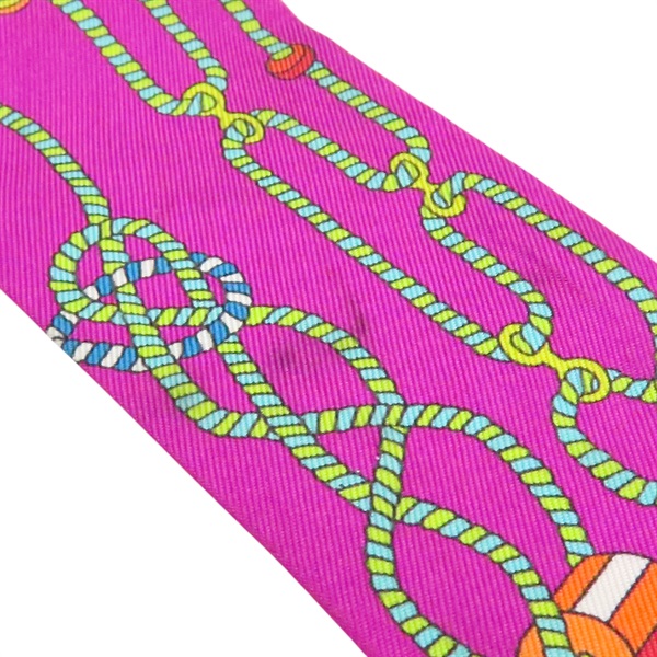 紫色 繩索圖案 絲綢 Twilly 絲巾 (污漬/脫線)【HERMES 愛馬仕】