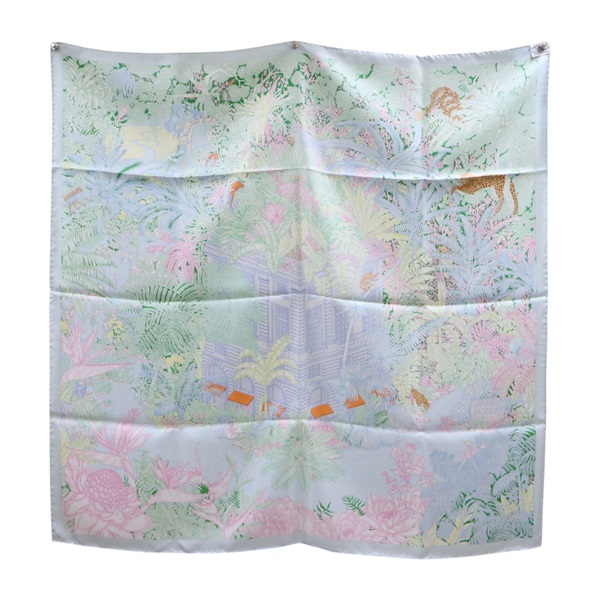 藍色 絲綢 Faubourg Tropical 方巾 90x90【HERMES 愛馬仕】