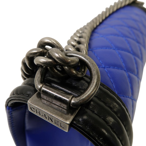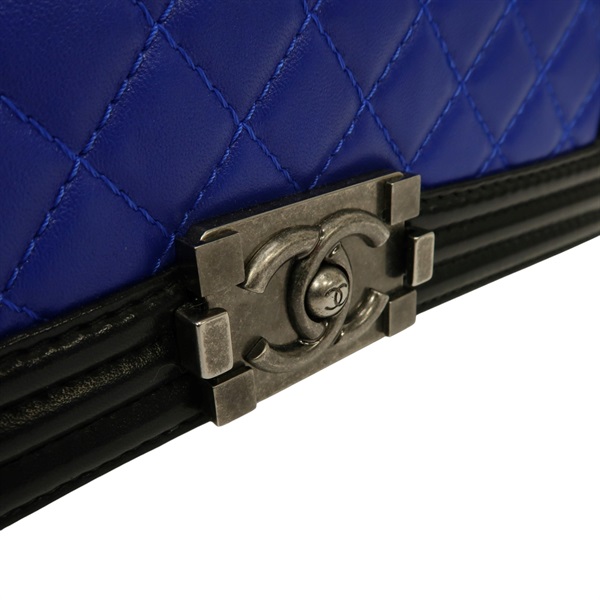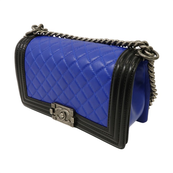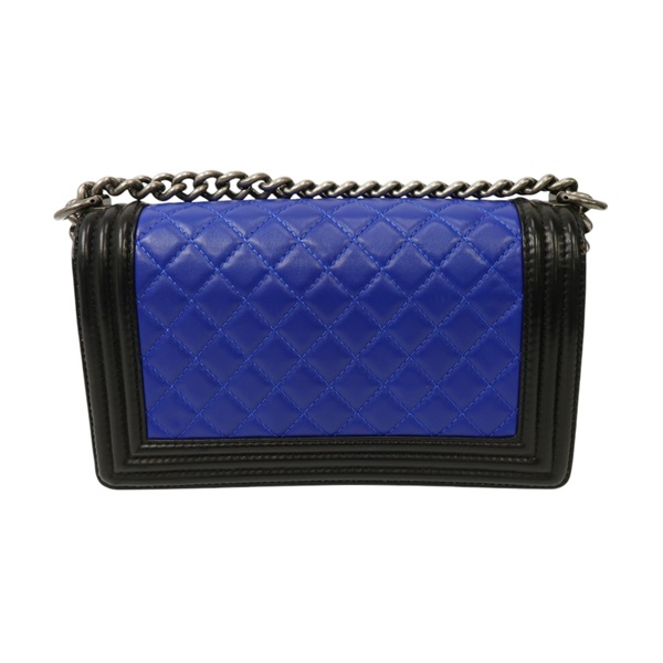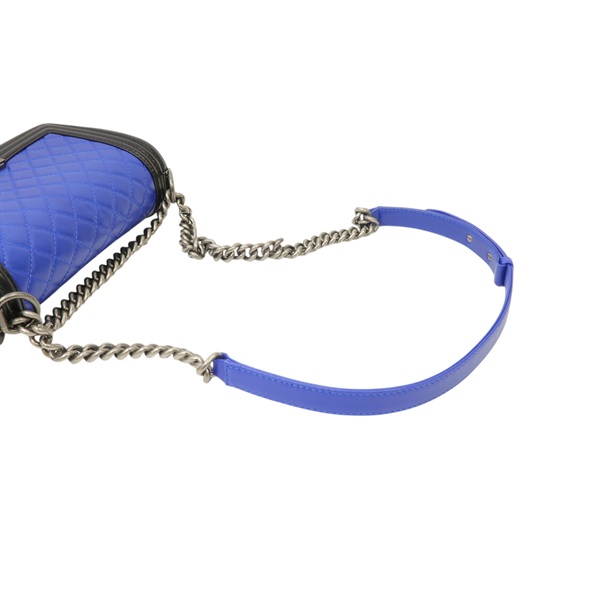 沒有「【激安價】藍色 黑色 羊皮 菱格紋 Boy Chanel 肩背包 鍊帶 銀扣 A67086」的庫存。